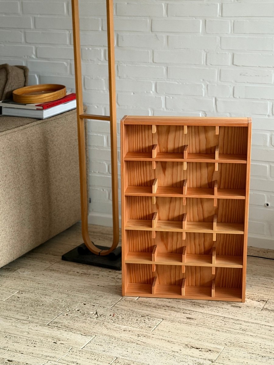 LOUISIANA x Sætter Copenhagen er en særlig udgave af vores Sætter 5 reol fremstillet eksklusivt til LOUISIANA. Reolen er lavet i oregon pine, hvis glød og særlige åremønster spiller sammen med Louisianas arkitektur og have.
